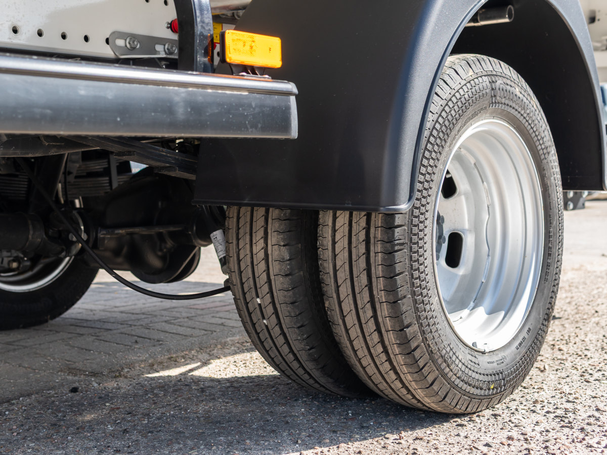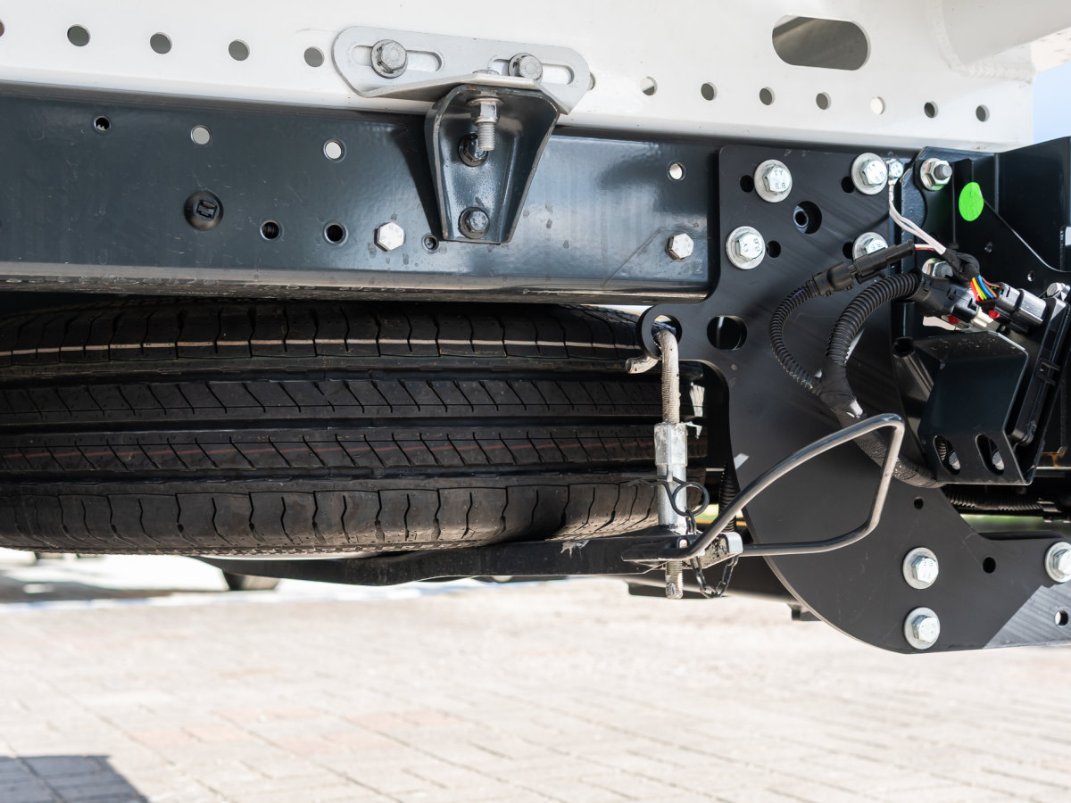 Koło zapasowe w wysuwnym koszu pod tylnym zwisem pojazdu